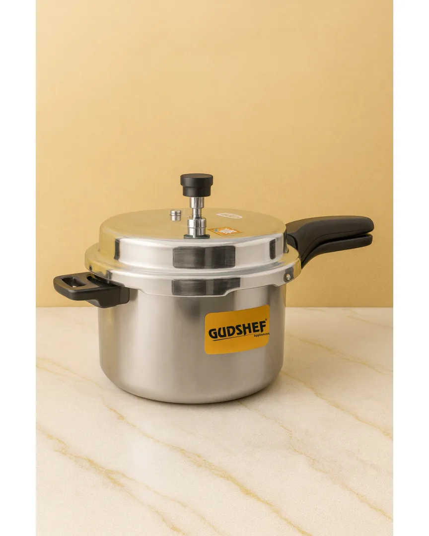 The GUDSHEF 12 Litre Pressure Cooker – Trendy DLX is designed for large households, catering services, and heavy-duty cooking. Equipped with a double safety valve system, it ensures enhanced safety and controlled pressure release for worry-free operation. Its sturdy build and modern DLX design deliver fast, efficient, and consistent cooking results. Backed by a 5-year warranty, the GUDSHEF Trendy DLX pressure cooker offers durability, safety, and reliable performance for everyday high-capacity cooking needs.