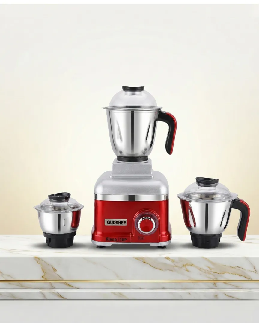 Experience powerful performance with the GUDSHEF Fiona 3-Jar Mixer Grinder, designed to make everyday cooking faster and easier. Powered by a 1 HP high-performance motor, it ensures efficient grinding, blending, and mixing. The three versatile jars are perfect for wet, dry, and chutney preparation, delivering smooth and consistent results. Backed by a 3-year warranty, the Fiona mixer grinder offers durability, reliability, and peace of mind for modern kitchens.